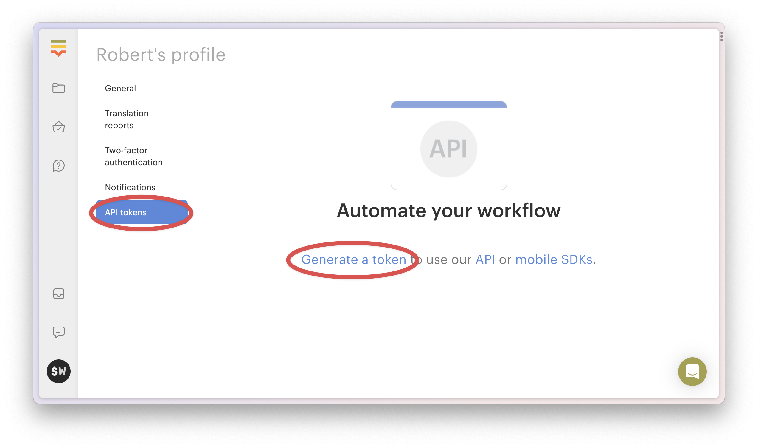 To set up Crowdin, you'll need to generate an API key.